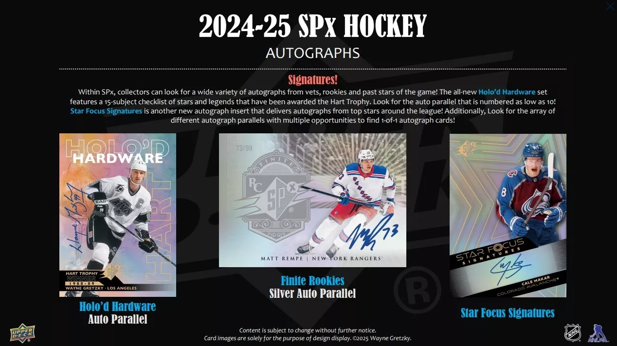 As SPx is known for the flashy hits, collectors can find four 4 PETG or simulated Hologram cards per box on average! This delivery is composed of the following inserts: