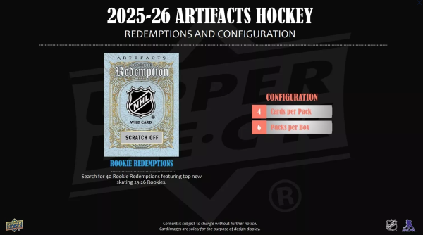 • The latest edition of Artifacts® features a loaded 240-card base set which includes redemption cards for new-skating 2025-26 rookies.