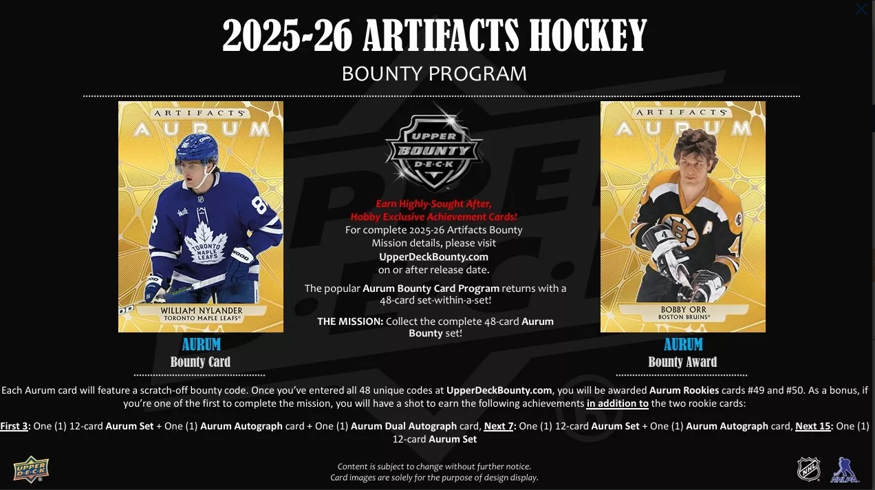 - All Remaining Collectors: Anyone who completes the set after the first 25 will receive the Rookie Bounty cards #49-50. Redeem all bounty cards at UpperDeckBounty.com. For more information about the bounty program, visit the site on or after release date.